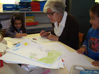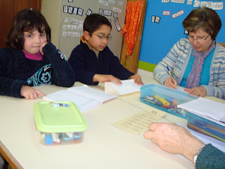 Ontem os Crescidos foram à Escola dos seus amiguinhos, para trabalharem em conjunto; no grupo dos "Fofinhos", foi muito proveitoso; concluimos a história, cada um de nós leu uma parte, delineámos a sua apresentação, procurou-se que os meninos nos contassem o que tinham ouvido, foi gratificante o envolvimento da Ana Carolina do João e da Mª João.Beijinhos